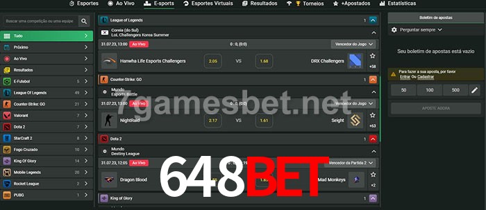 O 648Bet oferece uma grande seleção de opções de apostas em e-sports com probabilidades competitivas